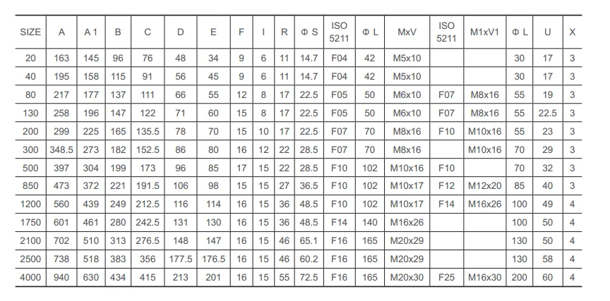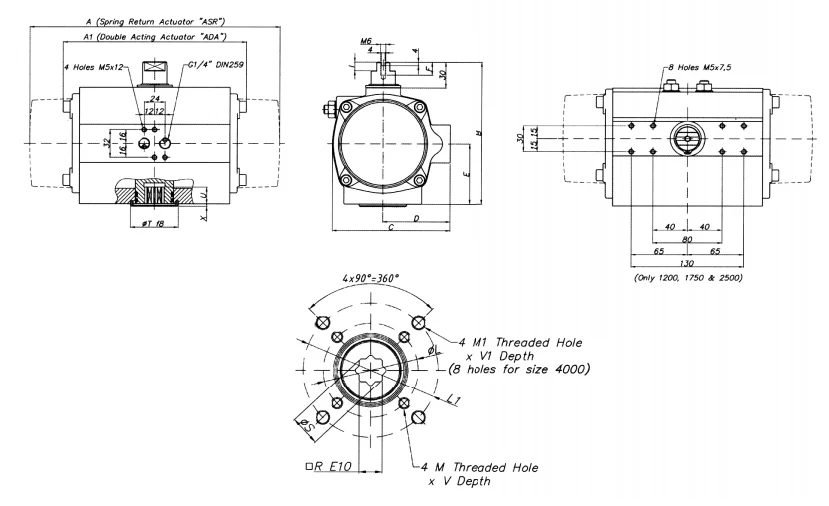 Pneumatic actuator size drawing