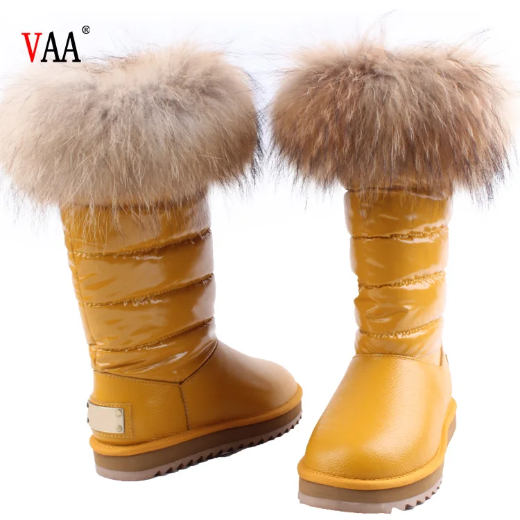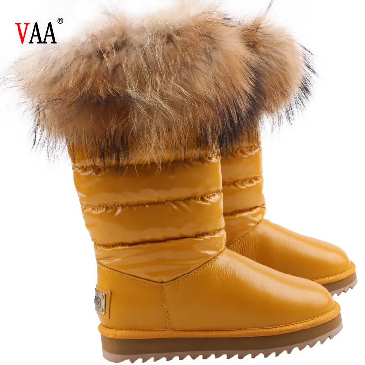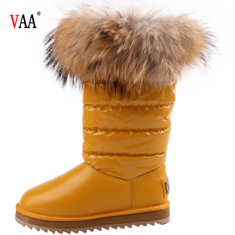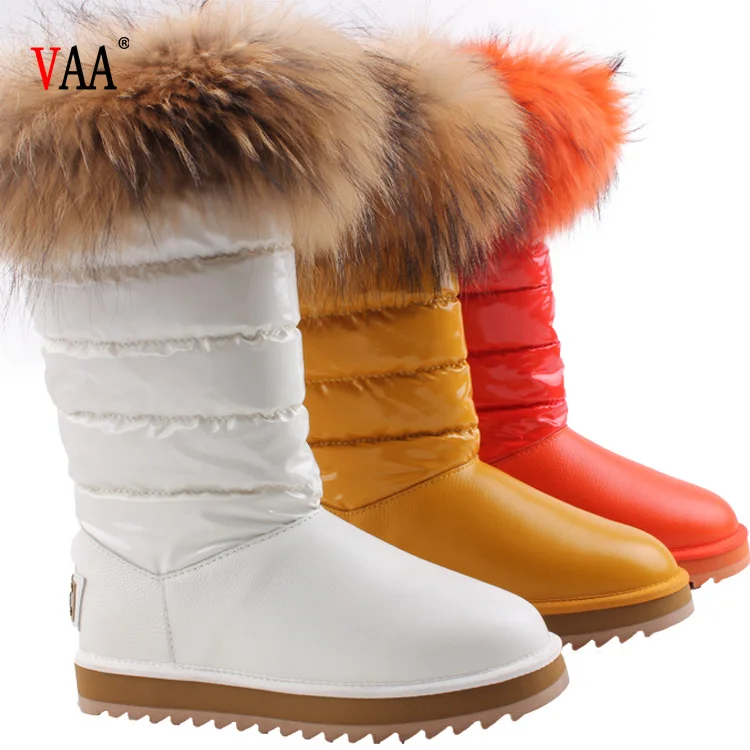 CF-079 Free Samples Waterproof Genuine Leather Racoon Fur Wholesale Fashion Lady Snow Shoes Boots