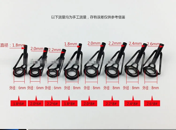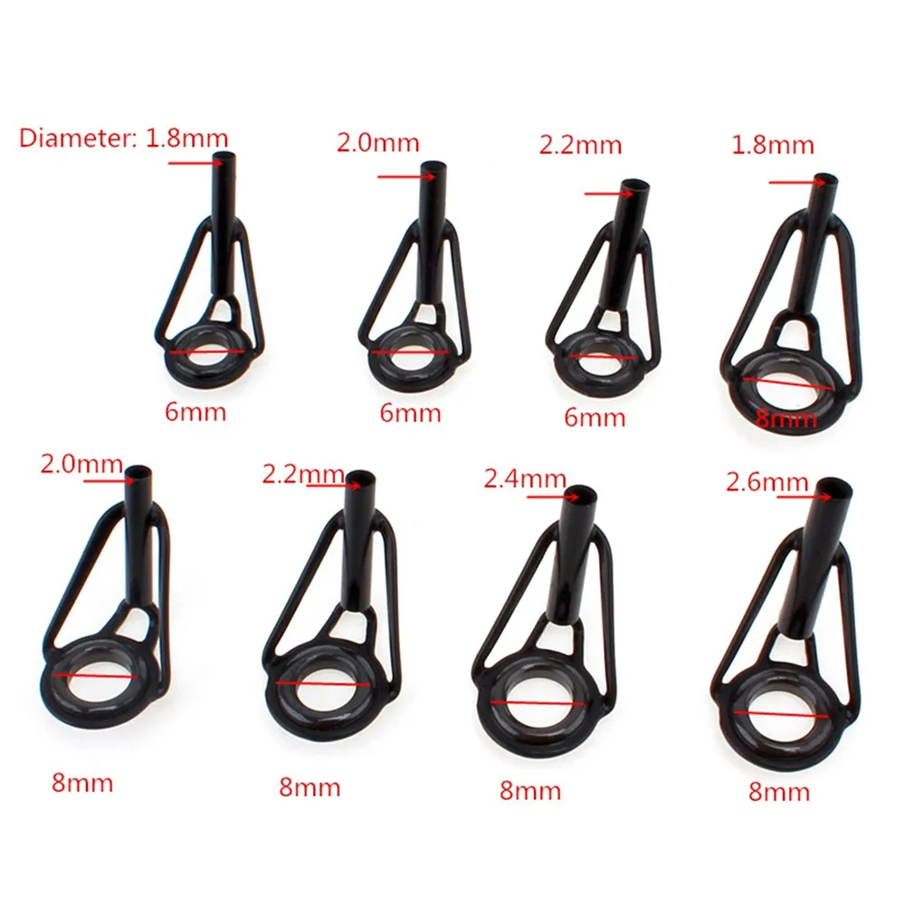 80pcs/box Fishing Rod Guide Ring Tip Top Fish Pole Repair Eye Ceramic Rings 1.8/2.0/2.2/2.4/2.6mm Top Dia. Freshwater Saltwater