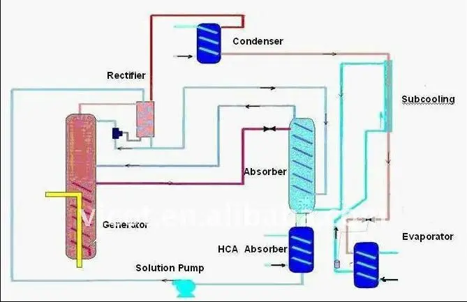 Vicot gas absorption heat pump, referred as GHP, using clean energy-natural gas as the driven energy, MR717 as refrigerant, water as absorbent, extract the low grade heat energy from the air through in heat exchanger; It is a highly efficient energy system in general utilization, which is capable of 1.8 times in heating efficiency.