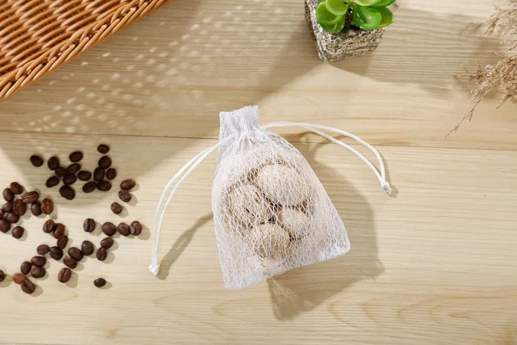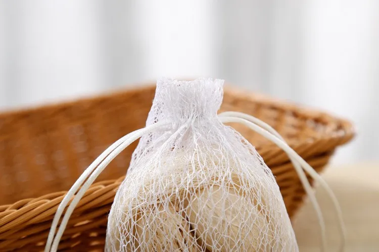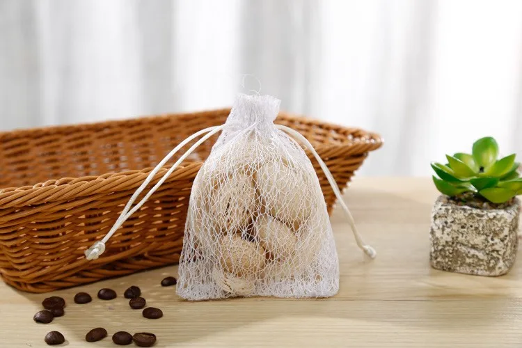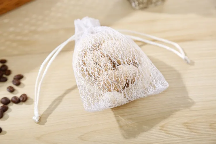 China factory promotional white cotton nylon mesh drawstring raschel bag for dry fruit storage