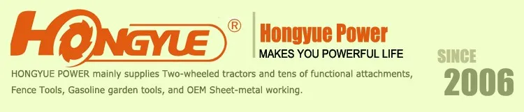 Founded in 2006, Hongyue Power mainly produces two wheel tractor and tens of functional attachments, Fence tools, Gasoline garden tools, and OEM sheeting-metal working. Welcome to visit our factory!