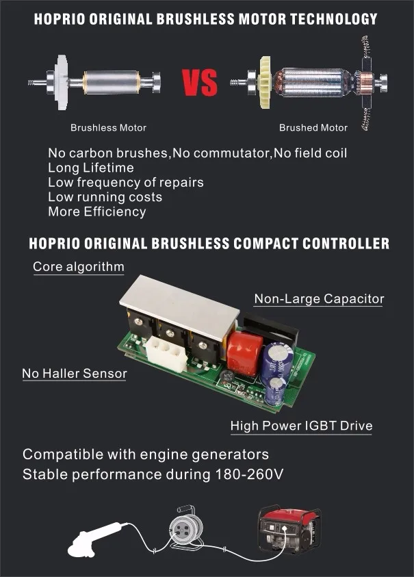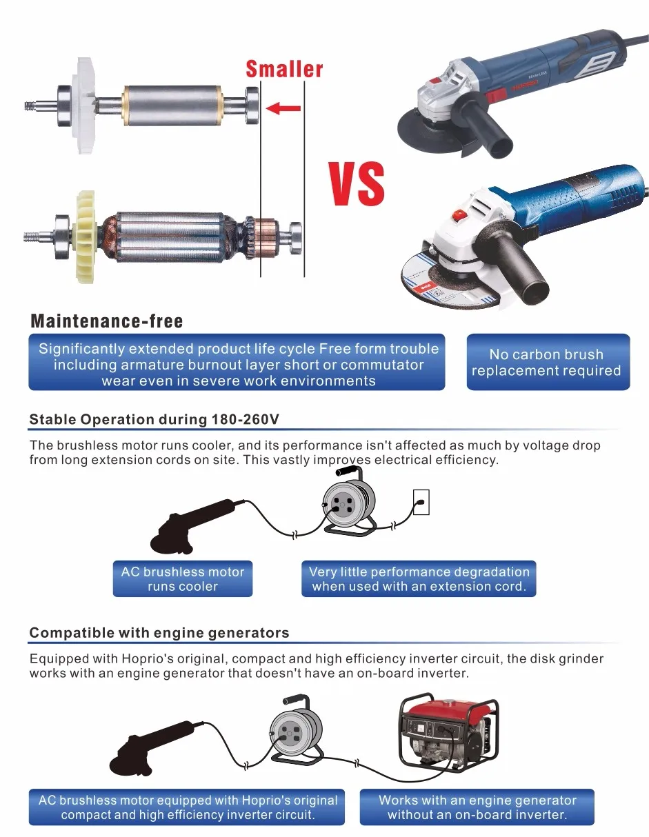 HOPRIO Industry First high quality 5'' 1250W 125mm single speed AC brushless motor angle grinder