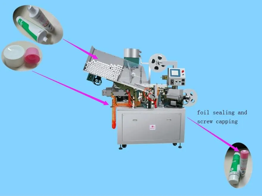 Tube Holing and Sealing and Capping Machine is suitable for opening the hole in the head of plastic or aluminum-plastic laminated tube which is hermetic, and sealing the hole with aluminum foil, then capping the tube finally. It includes three functions together.