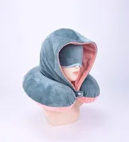 Memory Foam Neck Travel Pillow with Hood and Eye Mask