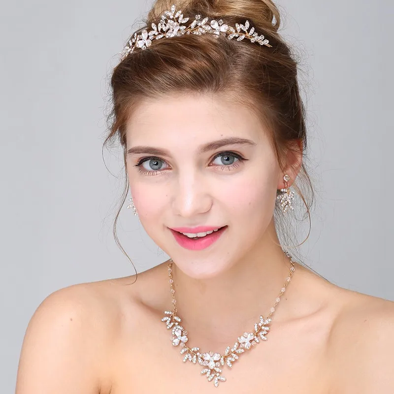 Products Name | 2019 Wholesale Wedding Hair Accessories Crown Handmade Crystal Diamond Necklace Earring Jewelry set For Women | ||||