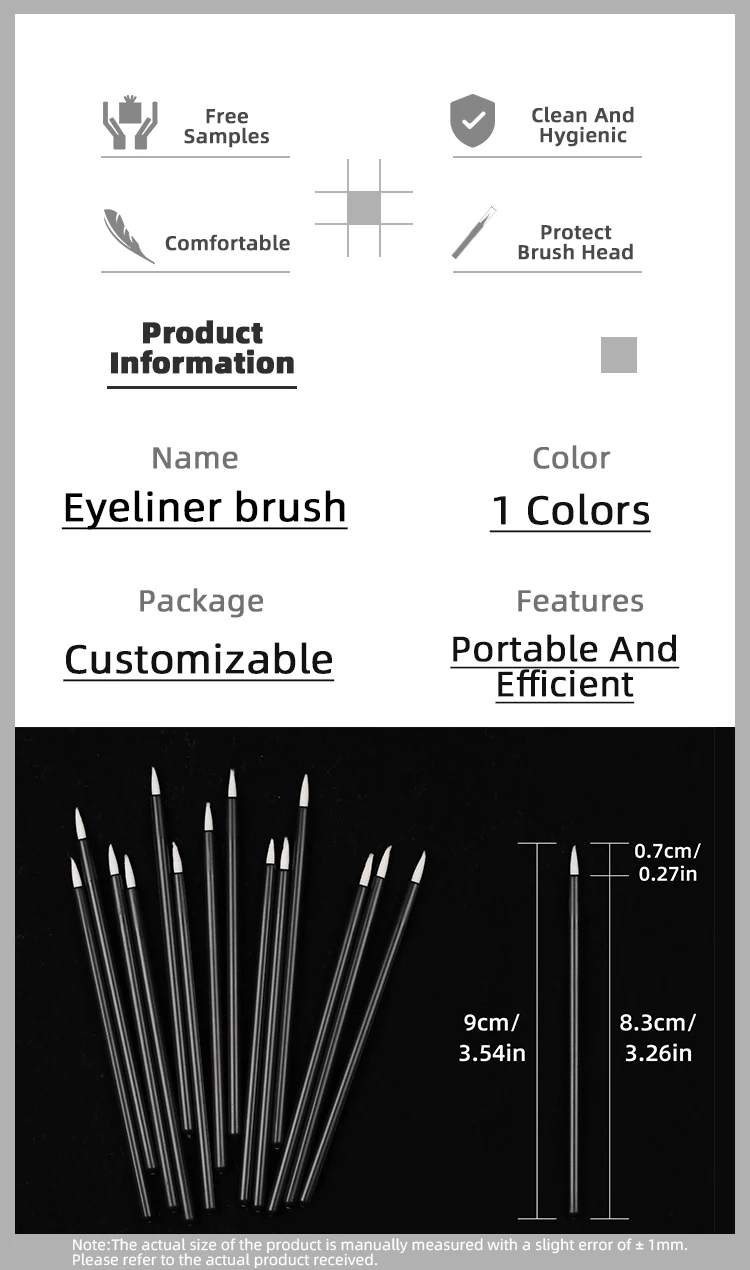 Nylon Liner Custom Logo Wand Applicator Tip Gel Elbowed Lip Disposable Eyeliner Brush