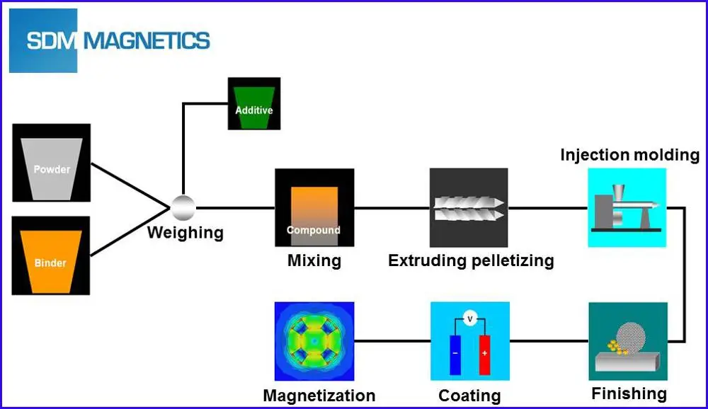 The process chart of injection ferrite magnet