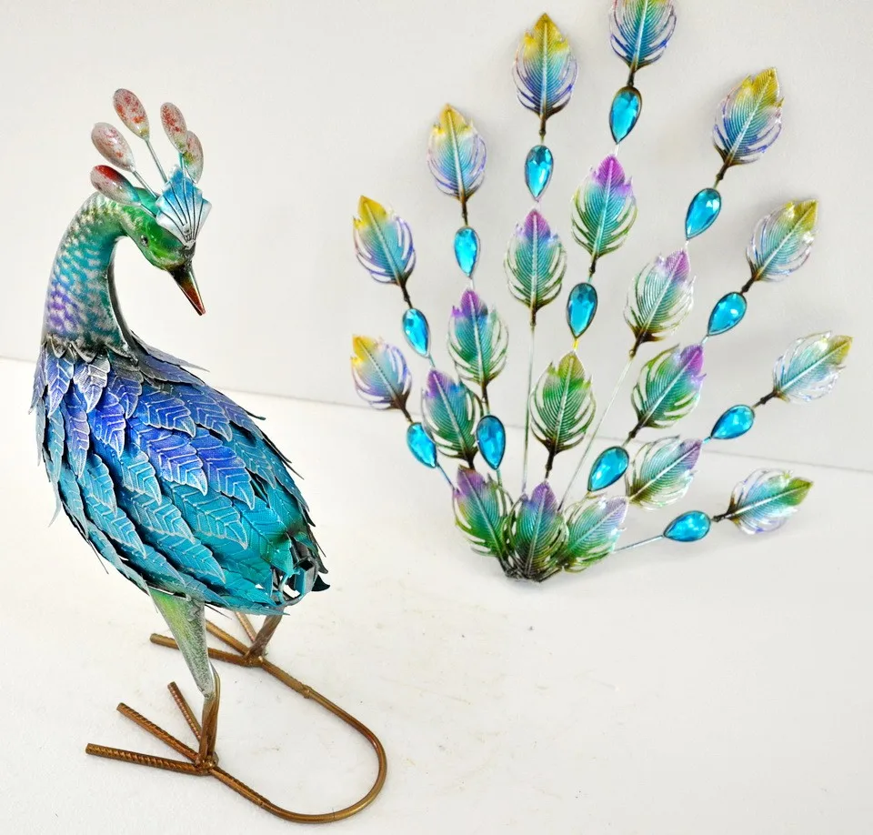 * outdoor peacock sculpture.