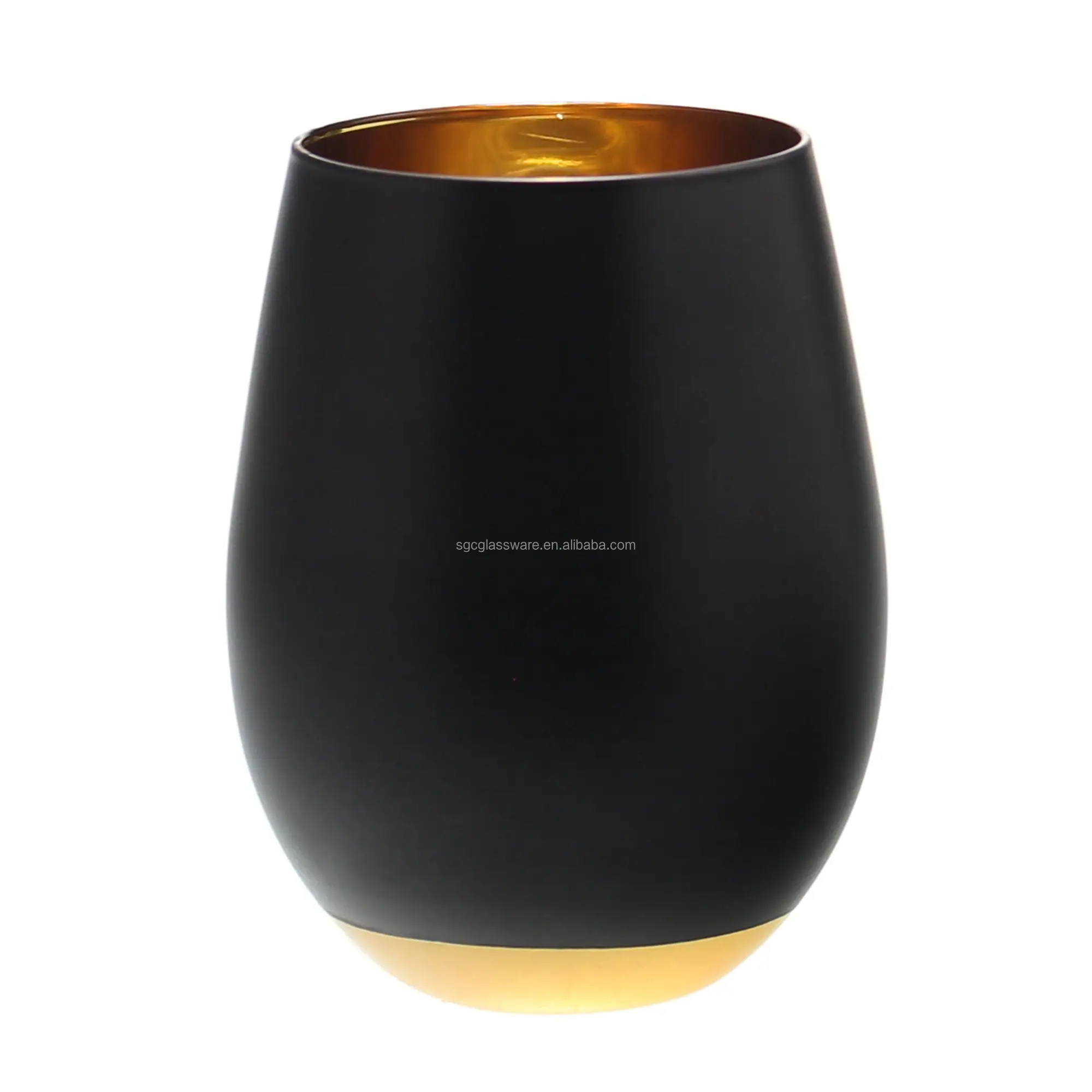 Best selling product polished black wine tumbler glass with gold rim