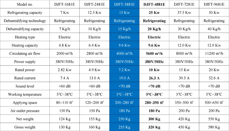 DJFT-3881E thermostatic dehumidifier is widely used in the area which need both control the temperature and humidity, like food industry, manufacturer, pharmaceutical industry, electric facilities, warehouse etc.