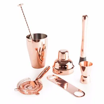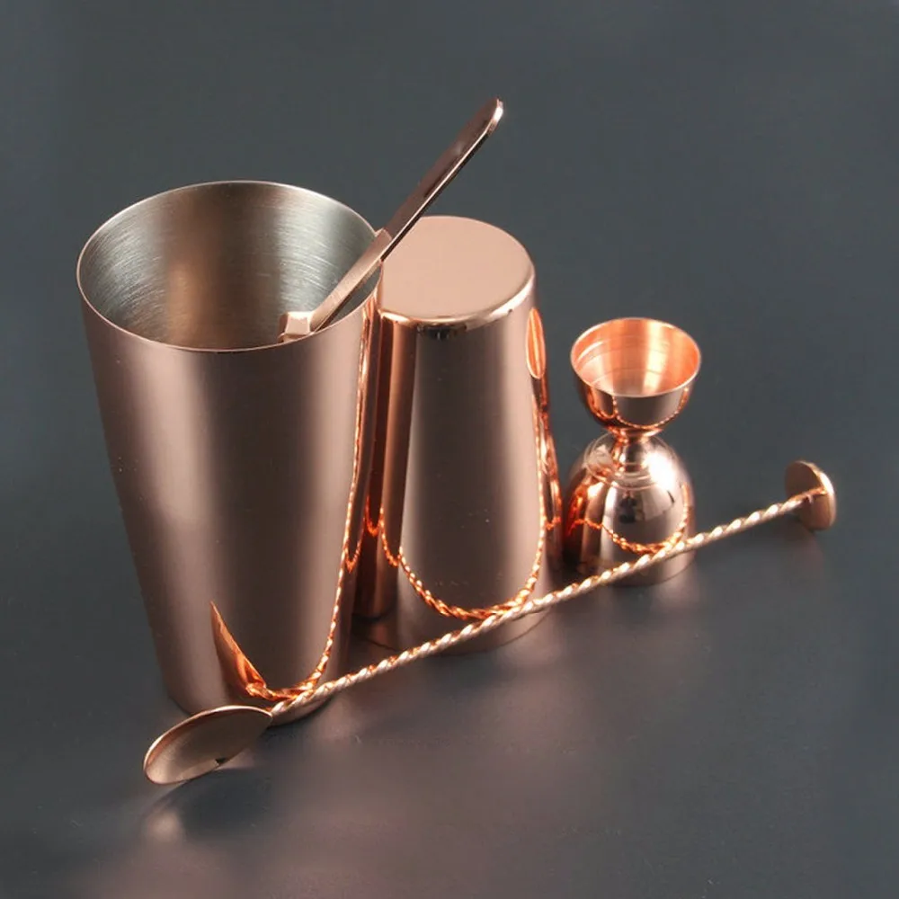 16Oz Martini Cocktail Shaker Stainless Steel Set - Premium Home Bar Mixer Built-in Strainer with Recipes Booklet - Rose Gold shaker bottle Barware Set Includes 28 oz. & 18 oz. Boston Cocktail Shaker, 1 oz. & 2 oz. Measuring Jigger, Cocktail Strainer and 10-3/4" Twisted Mixing Spoon, Rose-gold | ||||||