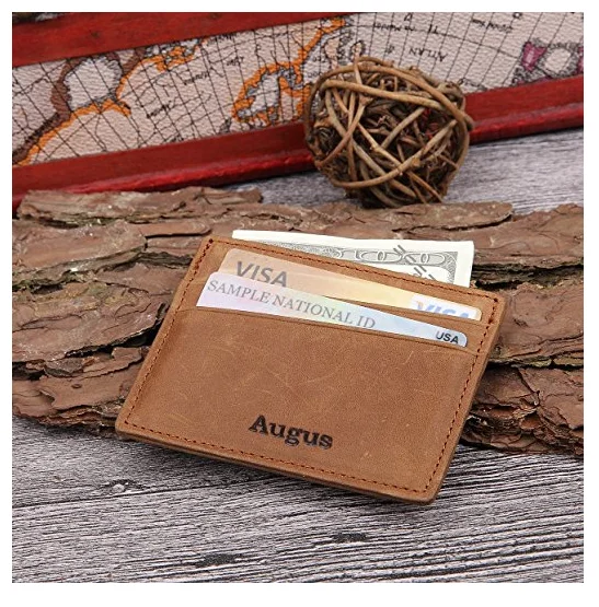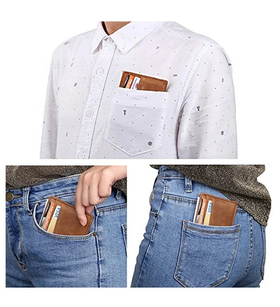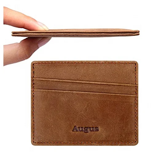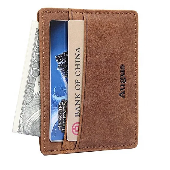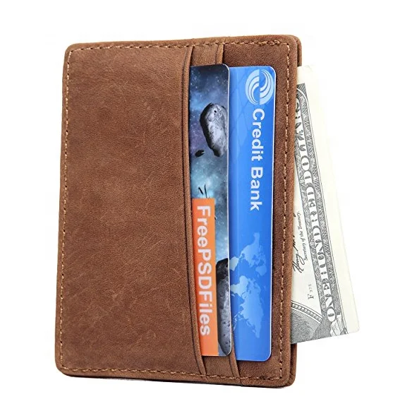 Wholesale Slim Card Holder Brown Leather Men's Minimalist Wallet With RFID Blocking