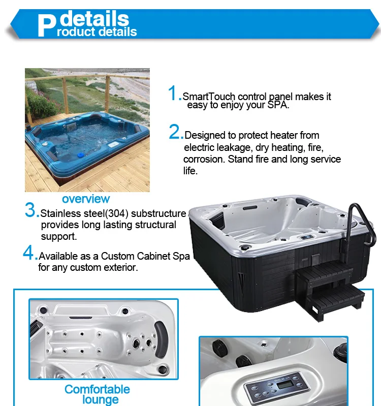 Ponfit Spa PFDJJ-05 7 person outdoor use luxury whirlpool spa bath tub with Balboa system