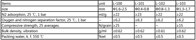 Used for rich oxygen generation, oxygen/nitrogen separation in air separation processes. Compared with common calcium-type and sodium-type molecular sieve for oxygen generation, HYGB100C applies to various VPSA devices with better capacity and separation efficiency.
