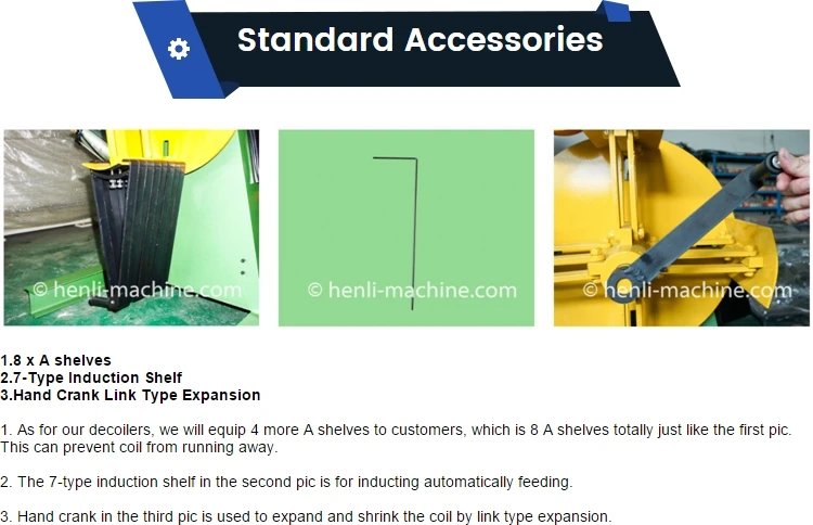 7.With heavy loading, simply feeding, and the operation is stable. The induction frame controls the opening and stopping of the decoiler automatically, no manual inspection is required, and high automation.