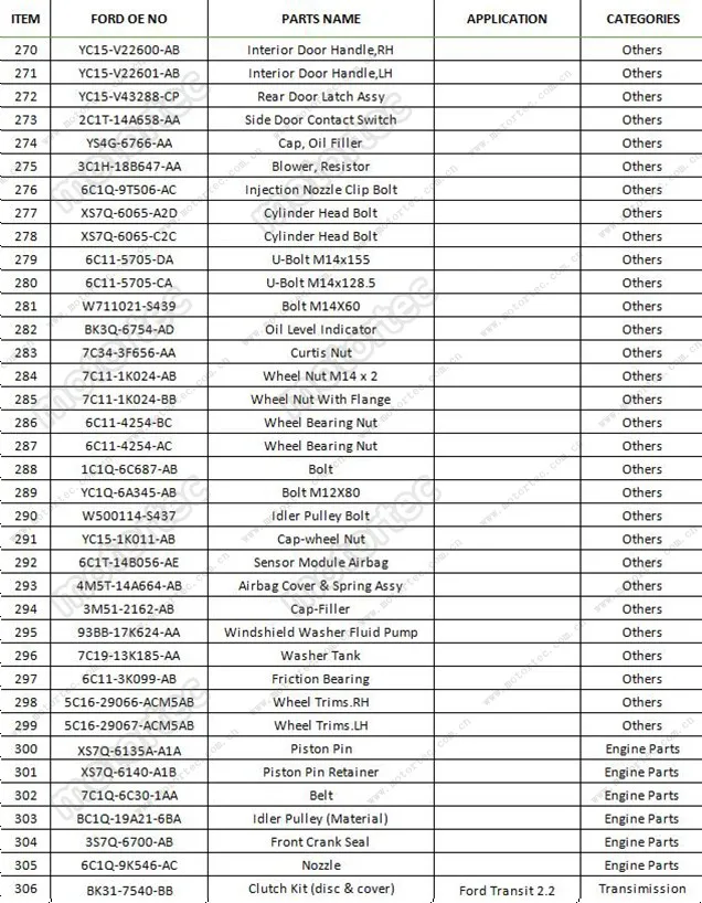 * Engine Parts for Ford Transit (all parts solution provider);