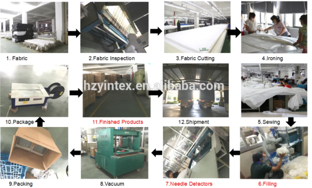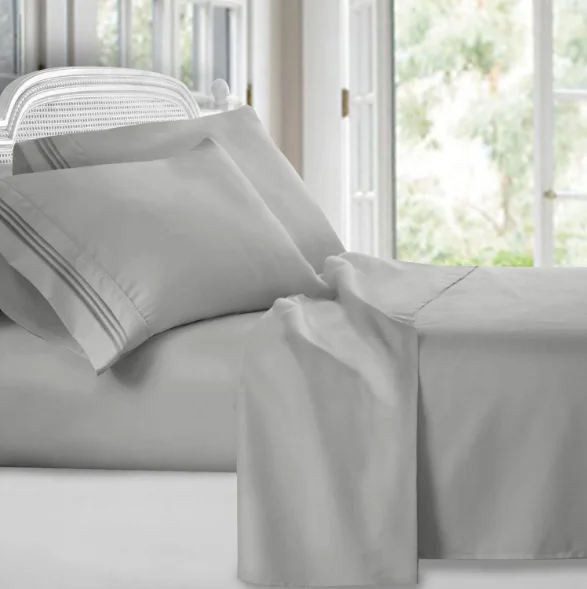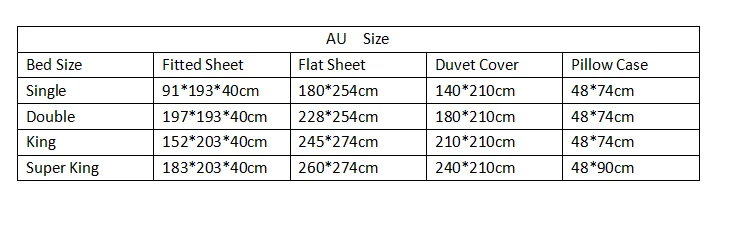 Construction: | Flat sheet and pillow cases 4"hem, pillowcase envelopment pattern. Duvet cover with a zipper on short side Fitted sheet with 0.9cm elastic straps on the bottom |