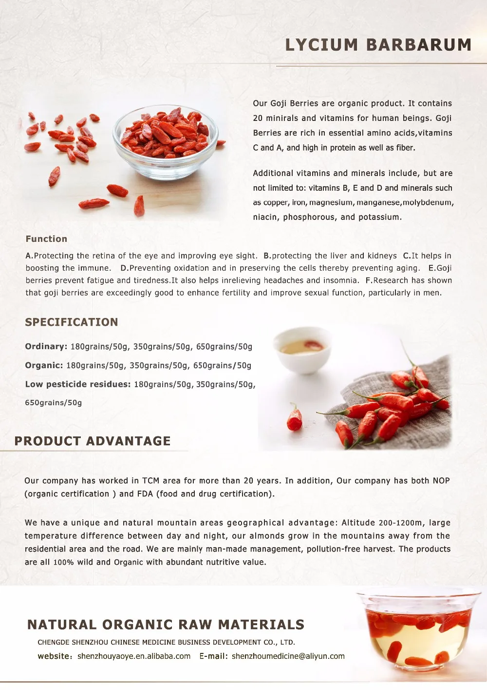 Our company has worked in TCM area for more than 20 years. In January 2007, Chengde Shenzhou Chinese Medicine Business Development Co., Ltd was established.In 2009, our company gained the Eu Organic Certification (ECO)