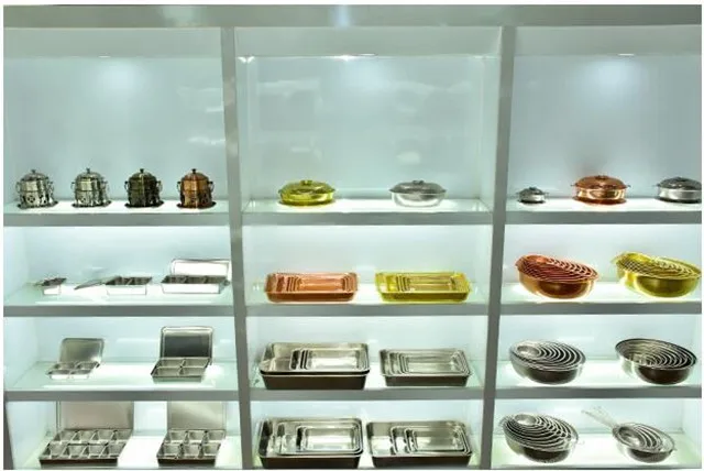 Glass Hotel Ware, Table Ware, Kitchen Utensil, home decoration,wedding decoration, like GN PAN, Chafing Dish, Water Flask, Cookware, Steamer pot, Rectangular Serving tray, Round Serving tray, Salad Bowl, Spice Box, Lunch Box, Boiling Water Kettle and so on.