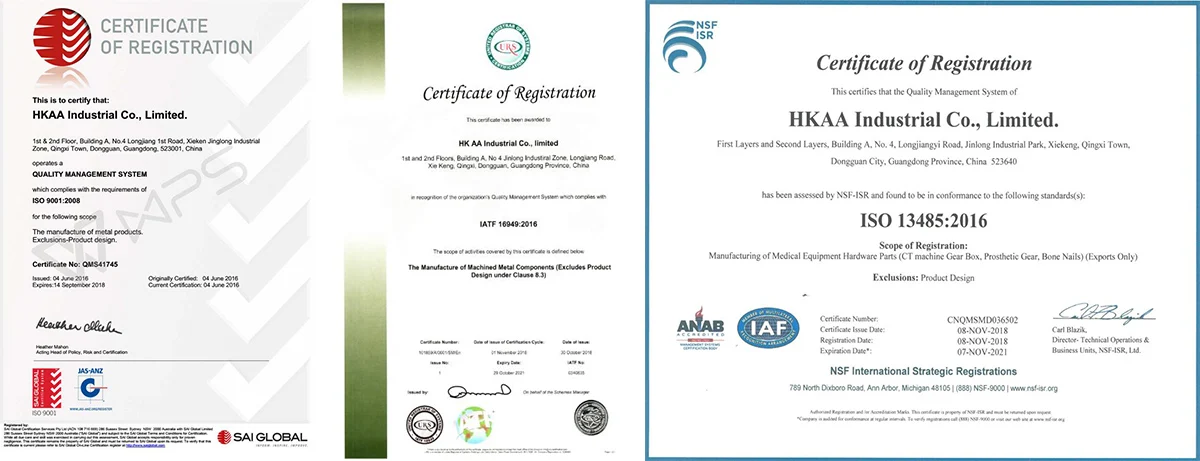 4. Certificate: ISO9001:13485,TS16949,AS1900