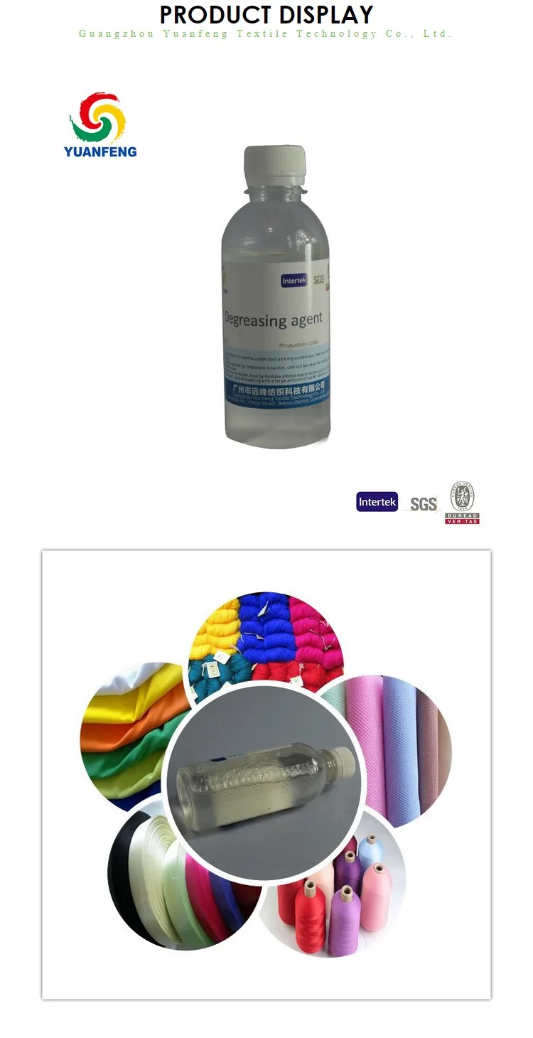 2.Degreasing agent is a non-solvent environment-friendly emulsifier and dispersant, especially for synthetic fibers and elastic fabrics degreasing refining, has good ability to remove oil stains and prevent oil stains back.