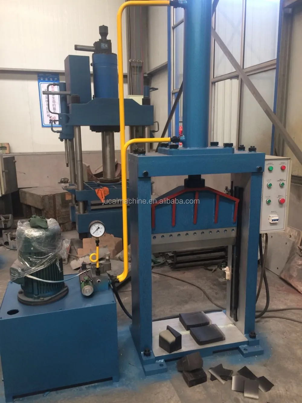 3.This machine mainly used for cutting natural rubber ,synthetic rubber into small pieces for plasticating and mixing , it is widely placed near the rubber kneader machine , cutting big rubber material into small pieces for next step