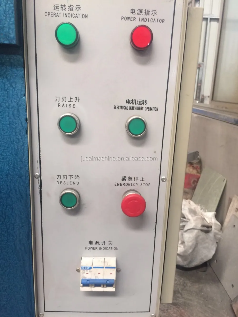 4.The machine mainly consists of cutter , rack , hydraulic station ,machine base ,electrical cabinet ,etc .There is nylon mat on the surface of machine to protect the knife against damage
