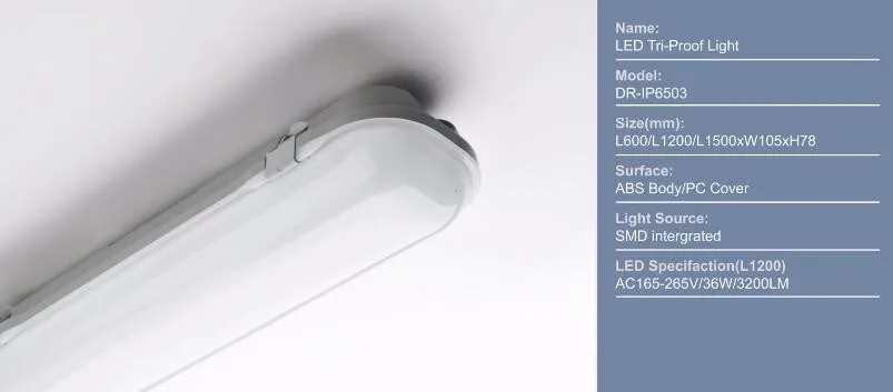 Waterproof led triproof light, with durable Iron body + PS cover