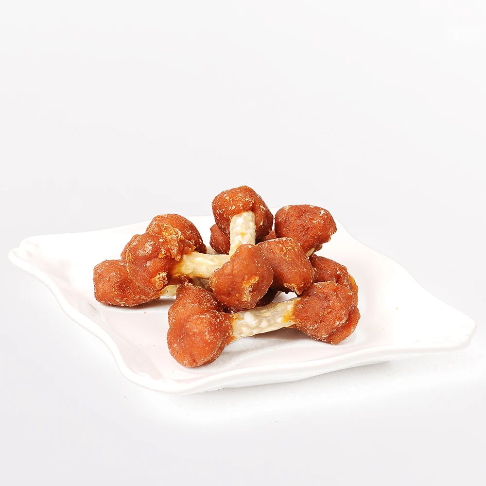 dog treat with high quality rawhide knot bone wrap chicken meat dog chewing food pet snacks