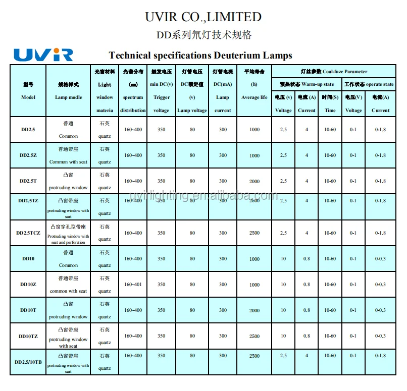 Deuterium lamps are ideal sources for UV spectroscopy, high-performance liquid chromatography (HPLC), capillary electrophoresis (CE), pollution monitors, as well as wide variety of specialized photometric equipment that require ultra-violet wavelengths.