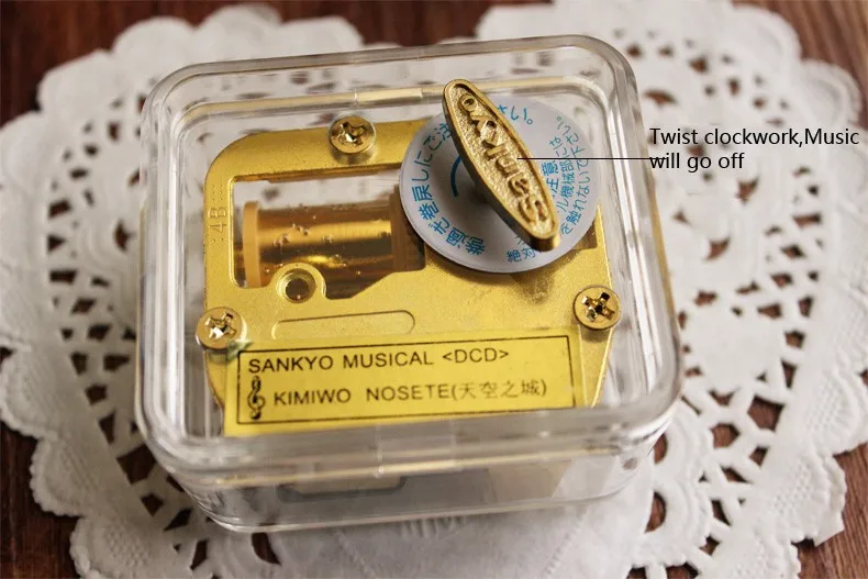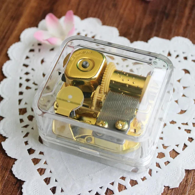 Rectangle lucency acrylic SANKYO movement clockwork music box birthday gifts