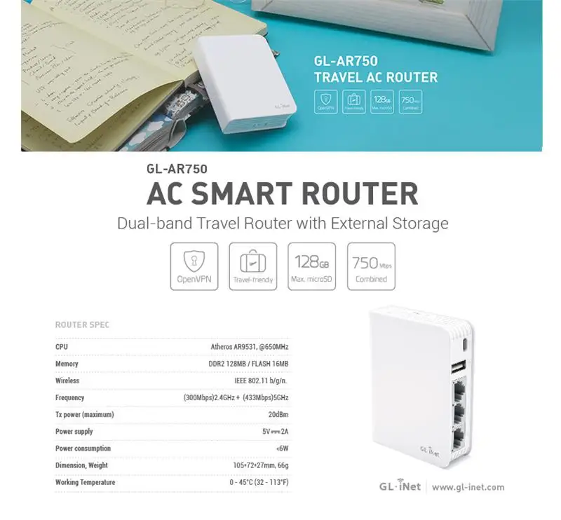 GL.iNet GL-AR750 Dual Band WiFi Router with OpenWRT OpenSource System