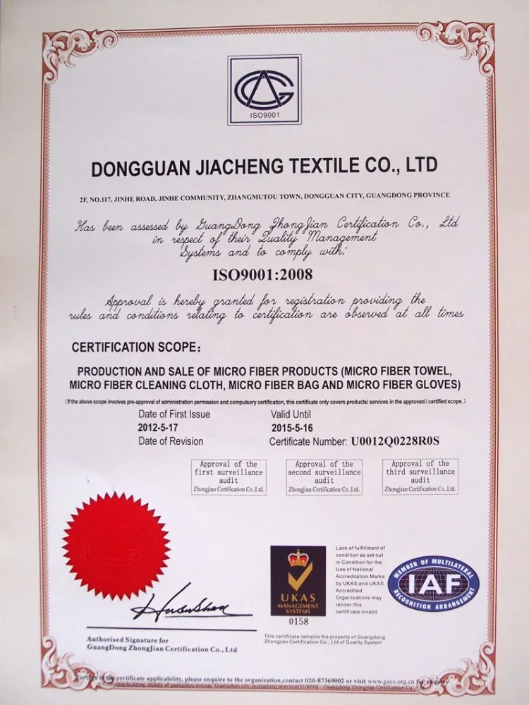 Dongguan Jiacheng Textile Co., Ltd. was formally established in 2009. It is a professional manufacturer of Microfiber products R & D, design, production, sales and service.Enhance brand image for customers, tailor-made,Series OEM processing services. Our company successfully passed the BSCI factory inspection, and the products passed relevant environmental protection tests and met environmental protection requirements. We have won the praise and trust of many users with excellent product quality, reasonable prices, fast delivery speed and good after-sales service. With the joint efforts of all employees, our products are mainly sold to Europe,the United States, Japan, South Korea and other countries and regions. We cooperate with hundreds of well-known brands for a long time.