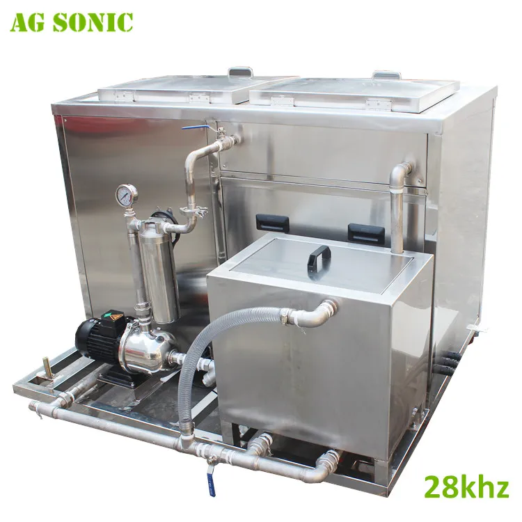 Cylinder head ultrasonic cleaner can be effectively used for heavy duty carbon removing oil. Oil filtration system is available to absorb the oil and recycle the solvent.