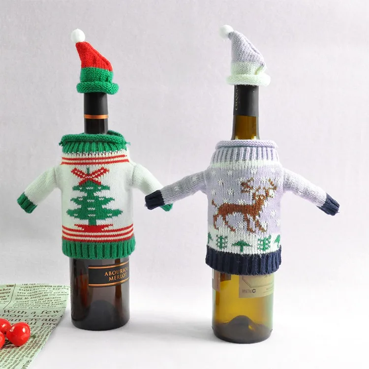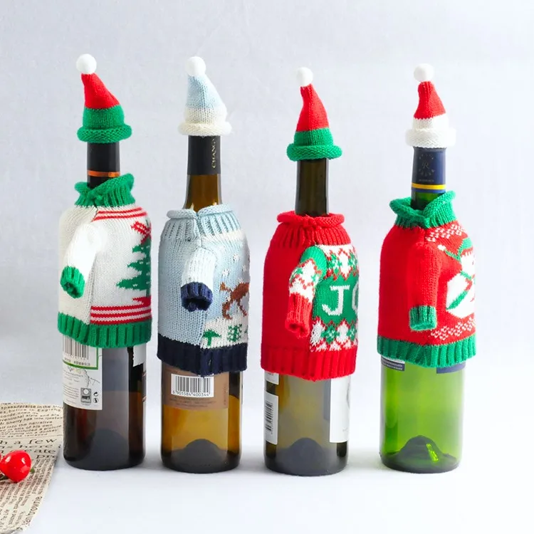 SJ179 factory Various Christmas Qualified Wine Bottle Cover Set Knitted MIni Colorful