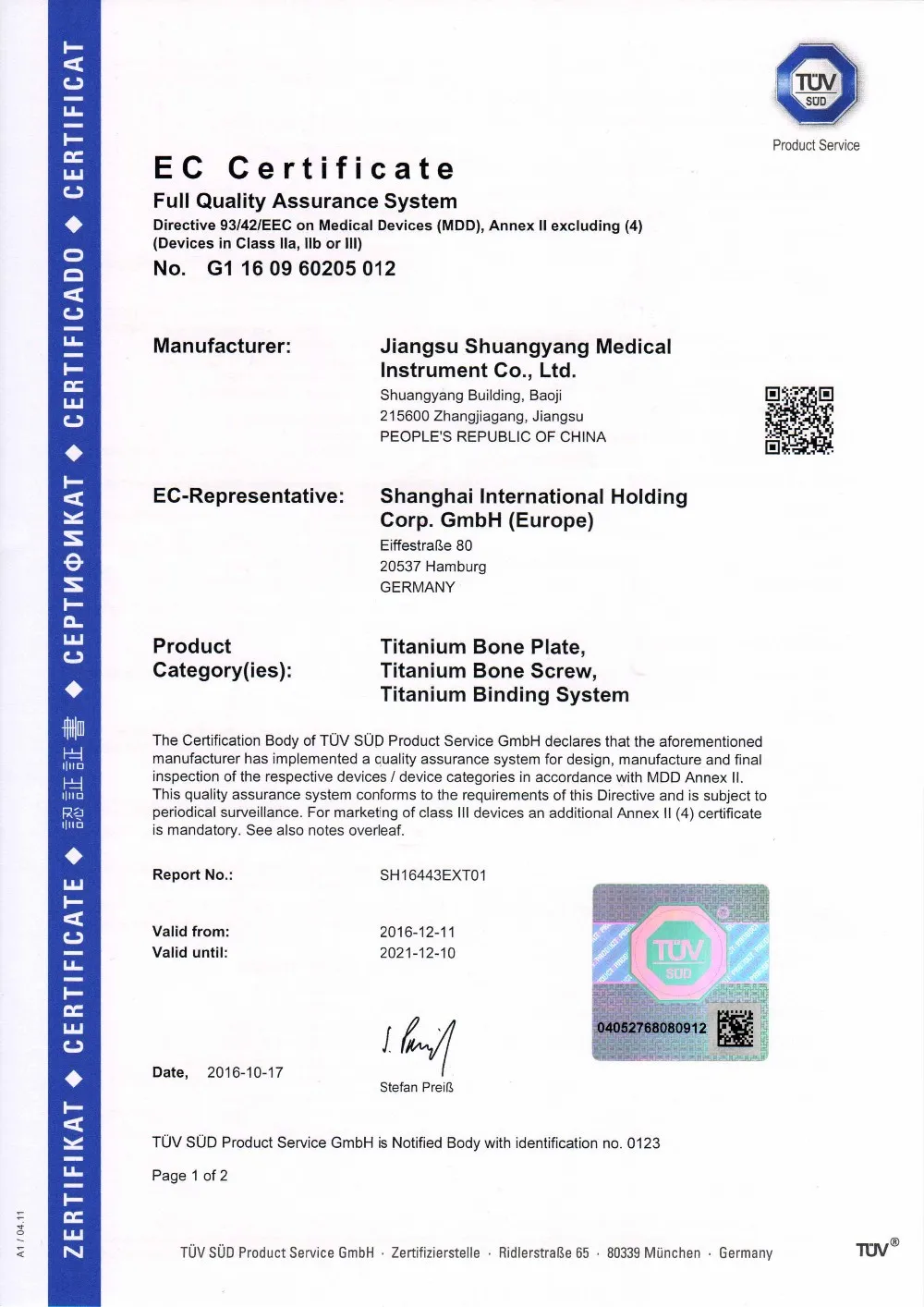 1. Experience: More than 20 years of manufacturing orthopedic implants