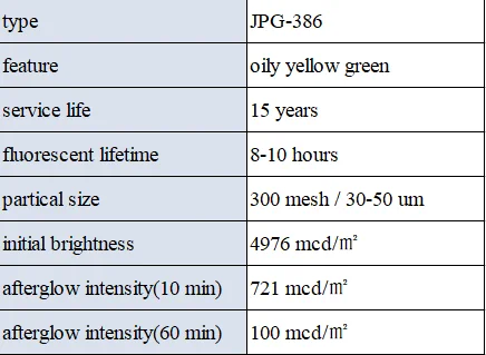Glow in the dark powder JPG-386 is suitable for ceramics, injection molding, printing, arts and crafts. The glow in the dark powder JPG-386 is non-toxic, without radiation. So it will not pollute the environment and it is absolutely harmless to human body, safe enough to be used.