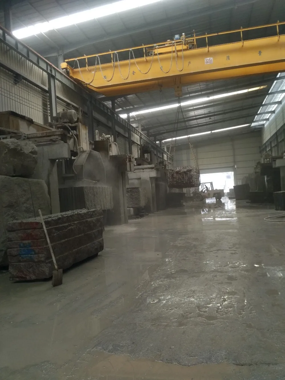 6. The machine moves along the crossbeam while cutting stone blocks;