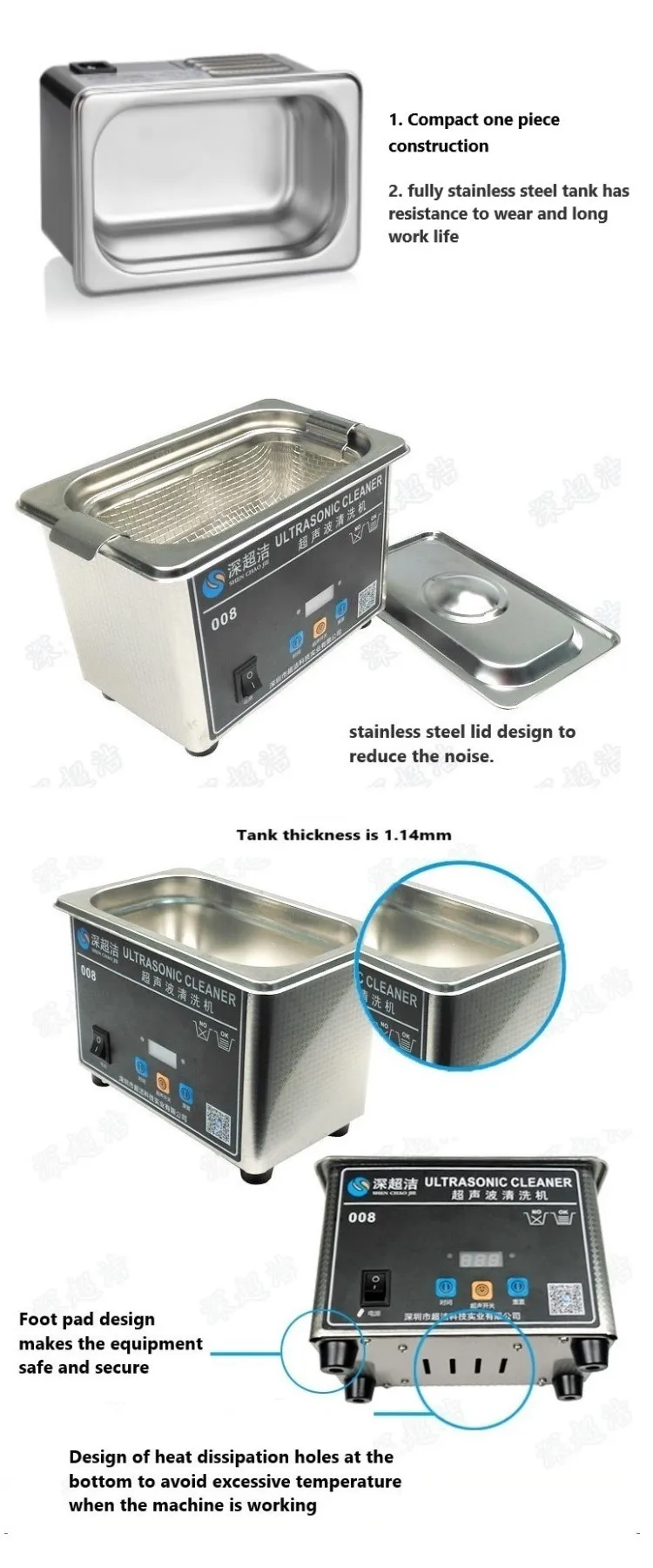 3. Compact one piece construction fully stainless steel tank has resistance to wear and long work life, stainless steel body ; stainless steel lid design to reduce the noise.