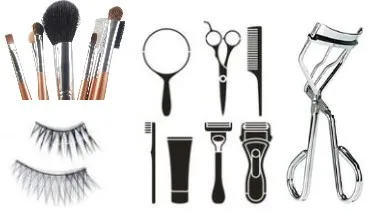 Eyebrow scissors, combs, brushes, fake eyelash, eyelash clip.