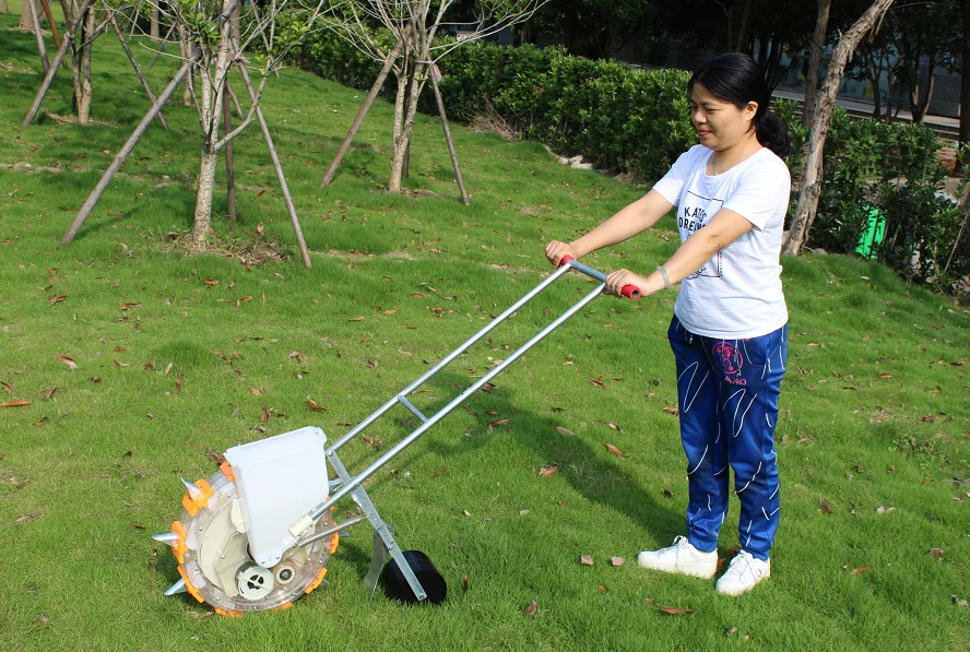 1.one seed one hole or multi seeds one hole as required. One person every day holding a machine section sowing more than 10 acres, planting efficiency.It saves labor and seeds for you.