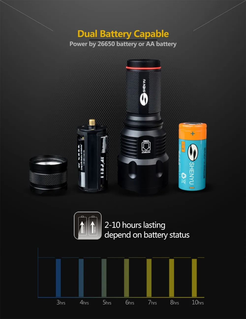Power Source | 1*26650/3*AA |