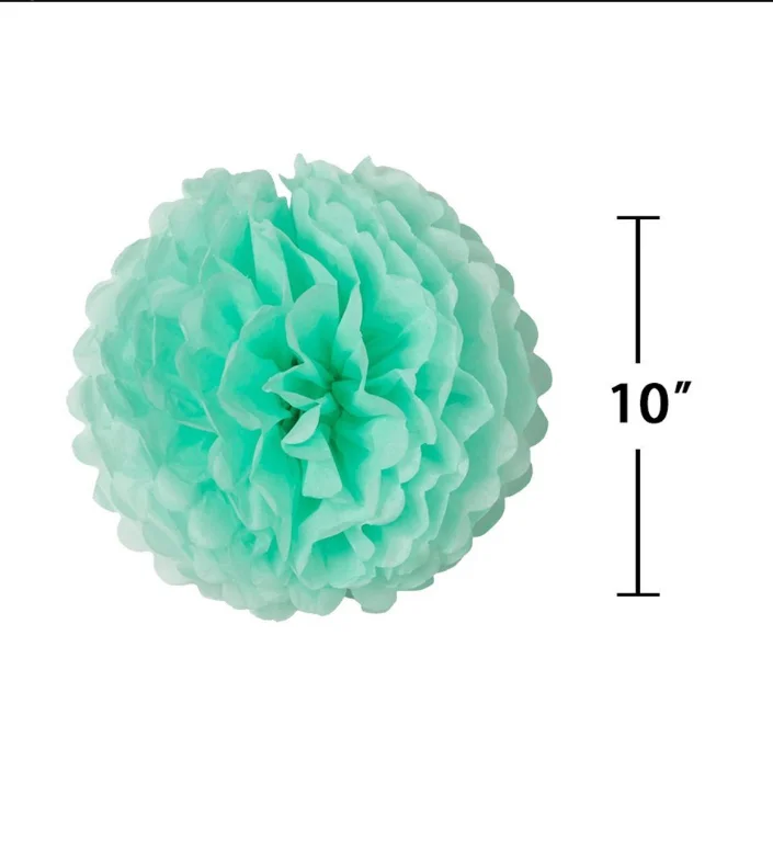 2).8*Tissue Pom Poms: diameter is 10 inches for each pom pom; 8 colors(red/rose red/pink/purple/mint green/blue/apple green/orange). Easy to diy: