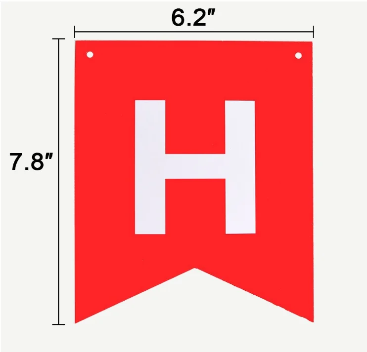 1). 1*Happy Birthday Banner: the upper one is approx 59 inches with 5 flags; the lower one is approx 78. 7 inches with 8 flags. The flag size: 7. 8inch high, 6. 2inch wide. 6.5ft colorful Paper Garland Circle Dots