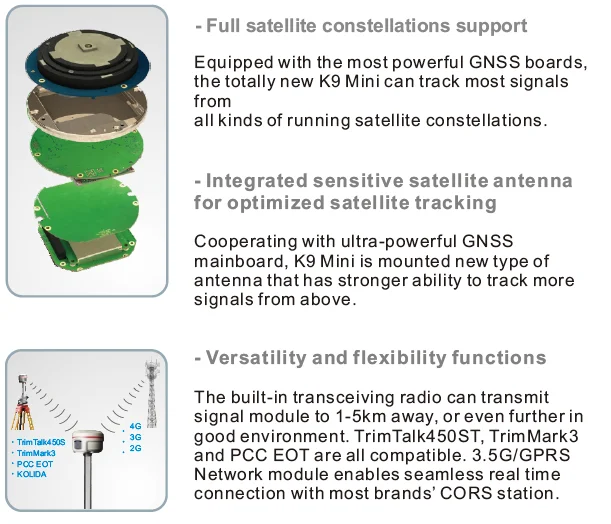 Featuring an ultra-powerful GNSS mainboard, K9 Mini can track and process signals from GPS, GLONASS,