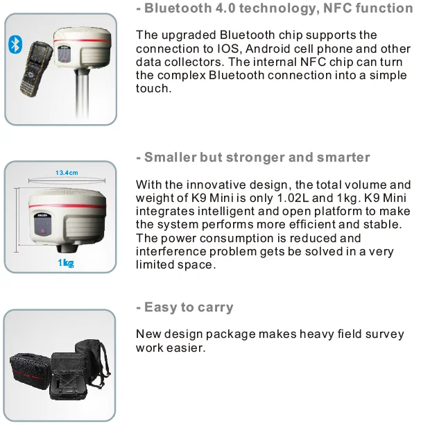 Equipped with the most advanced GNSS positioning technology, K9 Mini will provide you an awesome working
