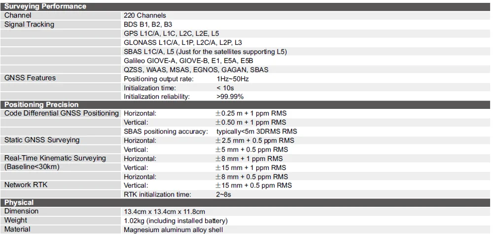 improved, the waiting time has been shortened and the positioning accuracy (RTK) is up to 8mm+ 1ppm in horizontal