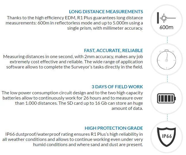 High performance 600m reflectorless Topography equipment STONEX R1 PLUS price china estacion total