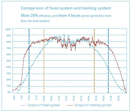Solar Tracker use back-track algorithm to ensure that the solar panels are not covered each other all day,power capacity increased again.